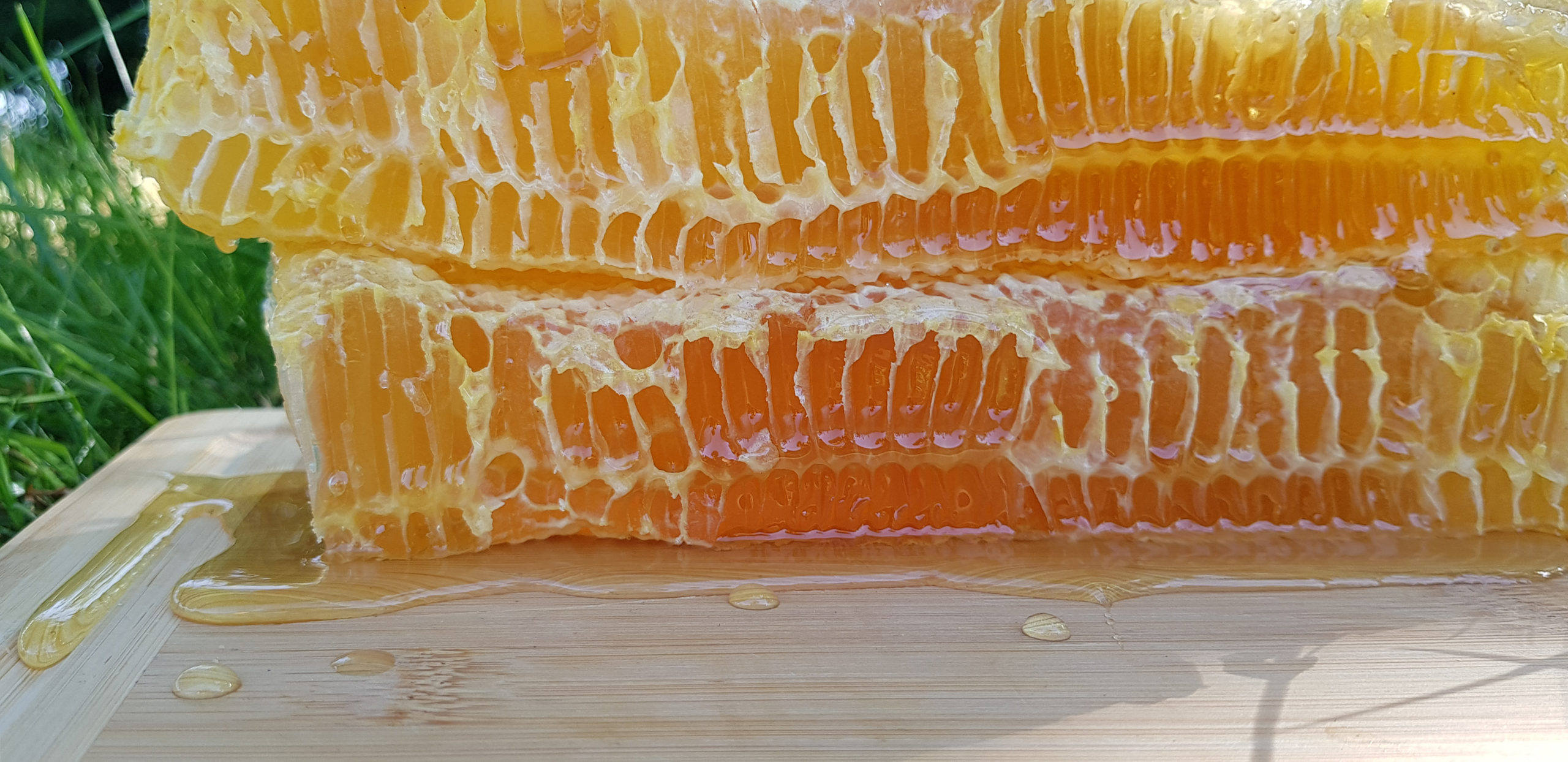Le miel en rayon, aussi appelé miel en brèche, est le miel tel que les abeilles le produisent et le stockent naturellement dans les alvéoles de cire. Ici, rien n’est transformé : le rayon est récolté directement dans la ruche, avec son miel et sa cire 100 % naturelle.